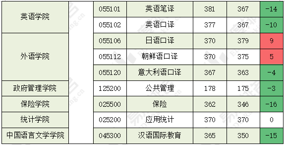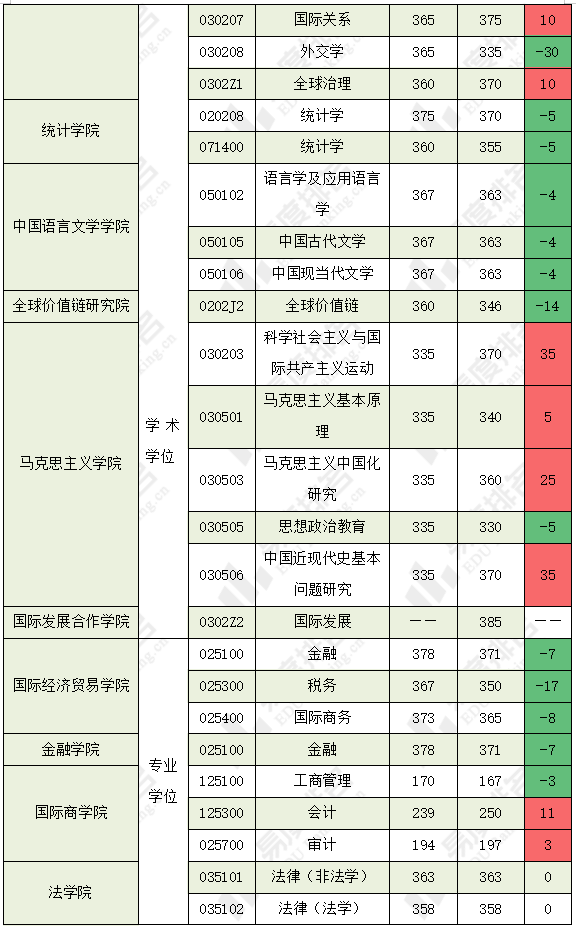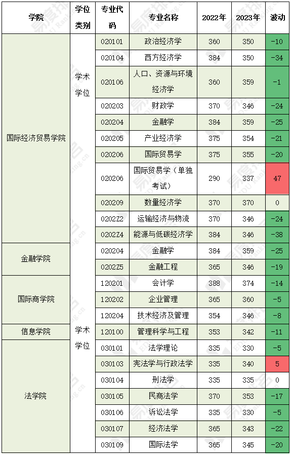 表 3 2022-2023年对外经济贸易大学复试线及变化情况