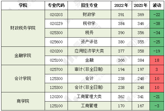 表 1 2022-2023上海财经大学复试基本分数线及变化情况