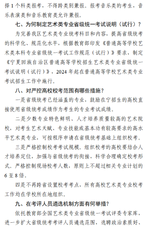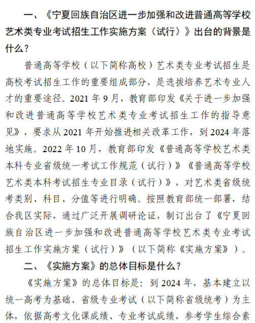 《宁夏回族自治区进一步加强和改进普通高等学校艺术类专业考试招生工作实施方案(试行)》问答