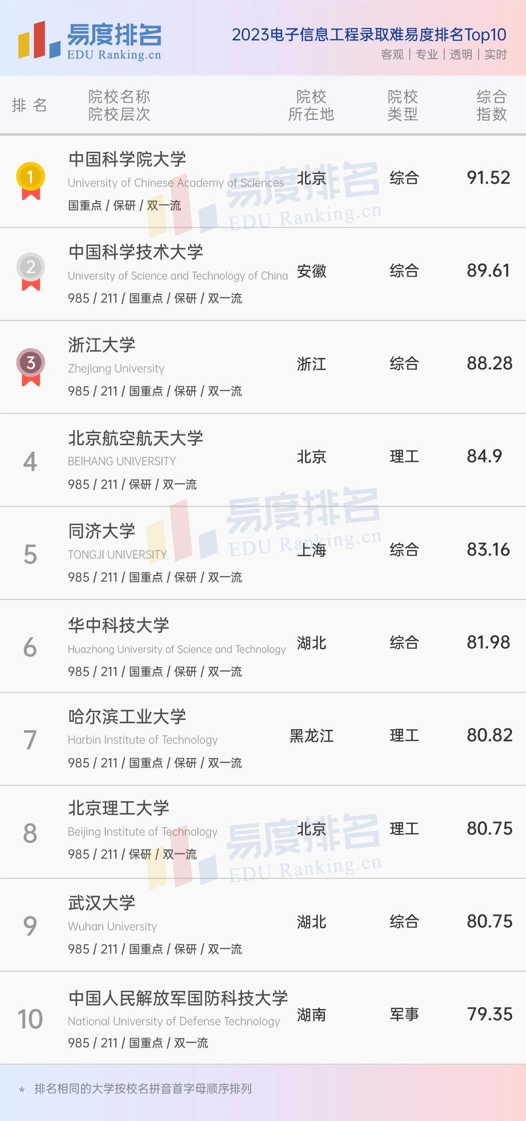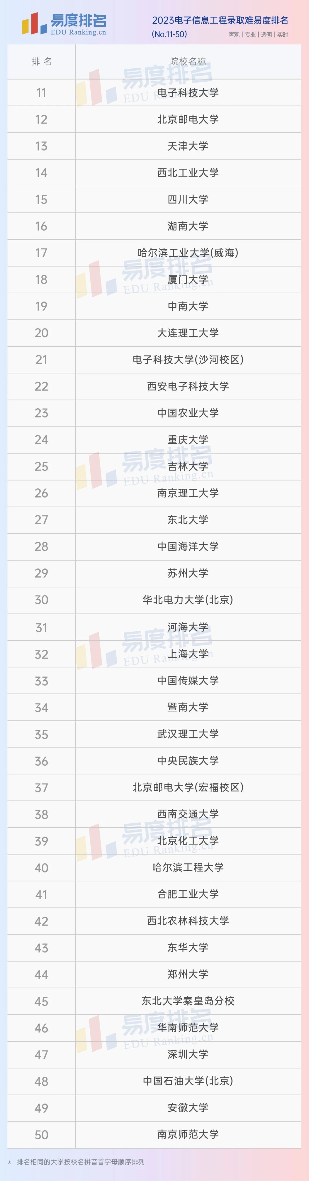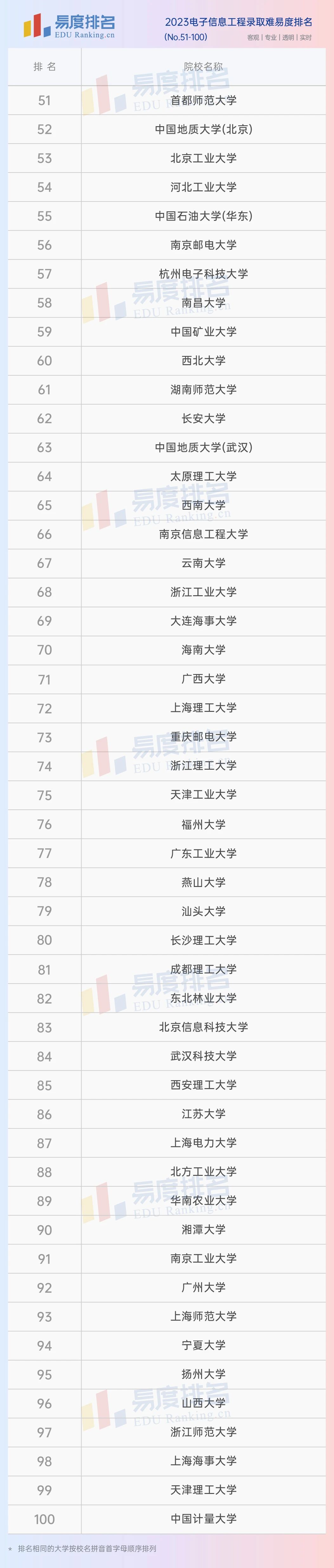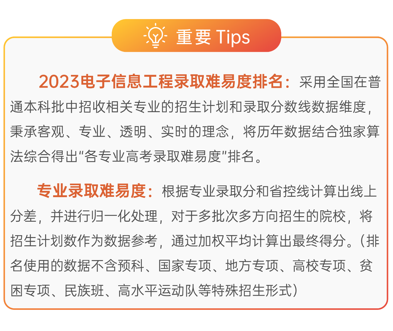 本期易度排名将公布“2023电子信息工程专业录取难易度排名”全部排名。(具体排名方式见文末)