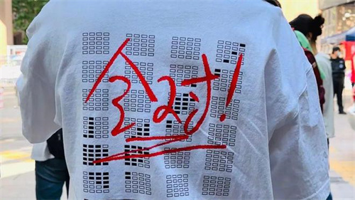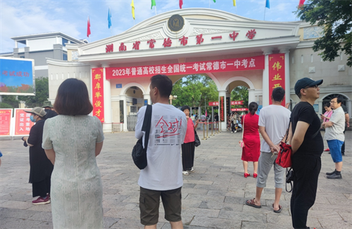 常德市第一中学考点前,一位家长穿上答题卡“全对”的T恤,祝愿孩子出色发挥,旗开得胜。
