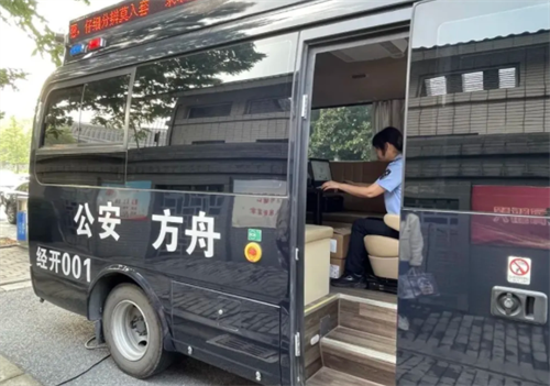 辅仁高中大门旁,经开公安方舟已就位,如有考生忘带身份证,可随时为考生开具临时身份证明!