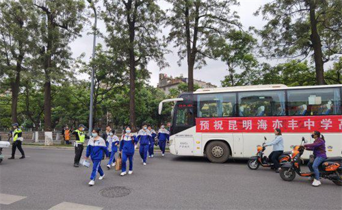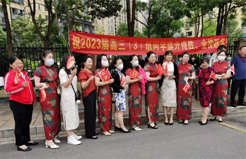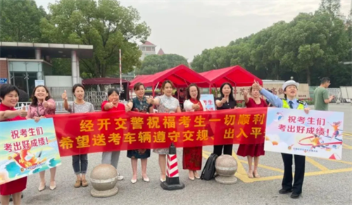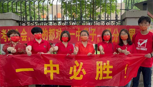 中华中学高三10班妈妈团为考生送考,希望孩了轻松上阵正常发挥。
