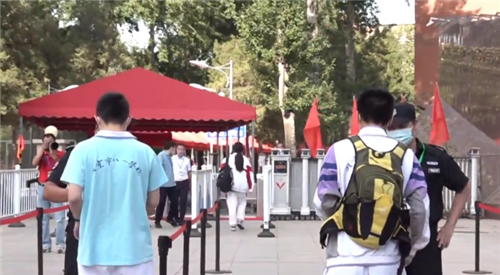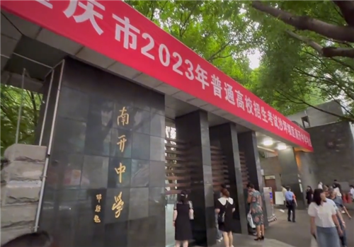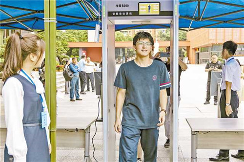 重庆高考考点全面启用“智能安检门”,考生们有序入场。