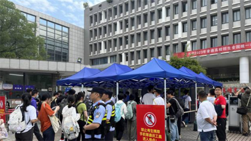 杭州高级中学考点,民警、交警多方部门为考生服务。