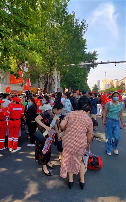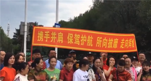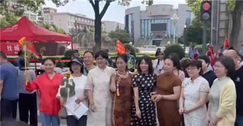 黑龙江高考现场第九中学考点门口,家长们穿着旗袍,寓意旗开得胜,为考生加油助力!