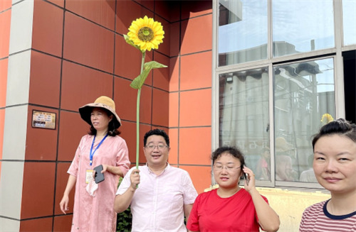 郑州市第九中学考场外,举着向日葵、穿着美旗袍!