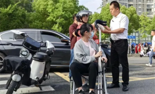 辅仁高中考点,坐轮椅的考生将由专人护送,走特殊通道进考场