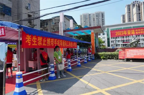 考场周边路段设立“高考区域、禁止鸣笛”“车辆绕行”等醒目警示标牌,并在各个考点附近的合理划分警示区域,应急区域,考生接送区域等,确保考生能够顺利进出场。