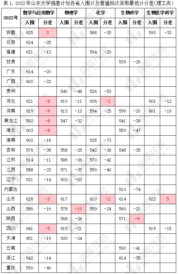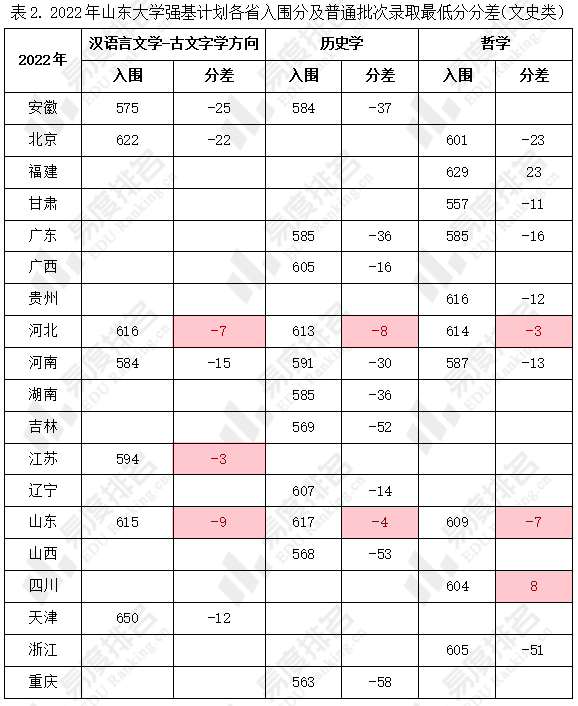 注:1.分差=入围分-普通批次对应专业的录取最低分。 2.四川、北京、贵州没有