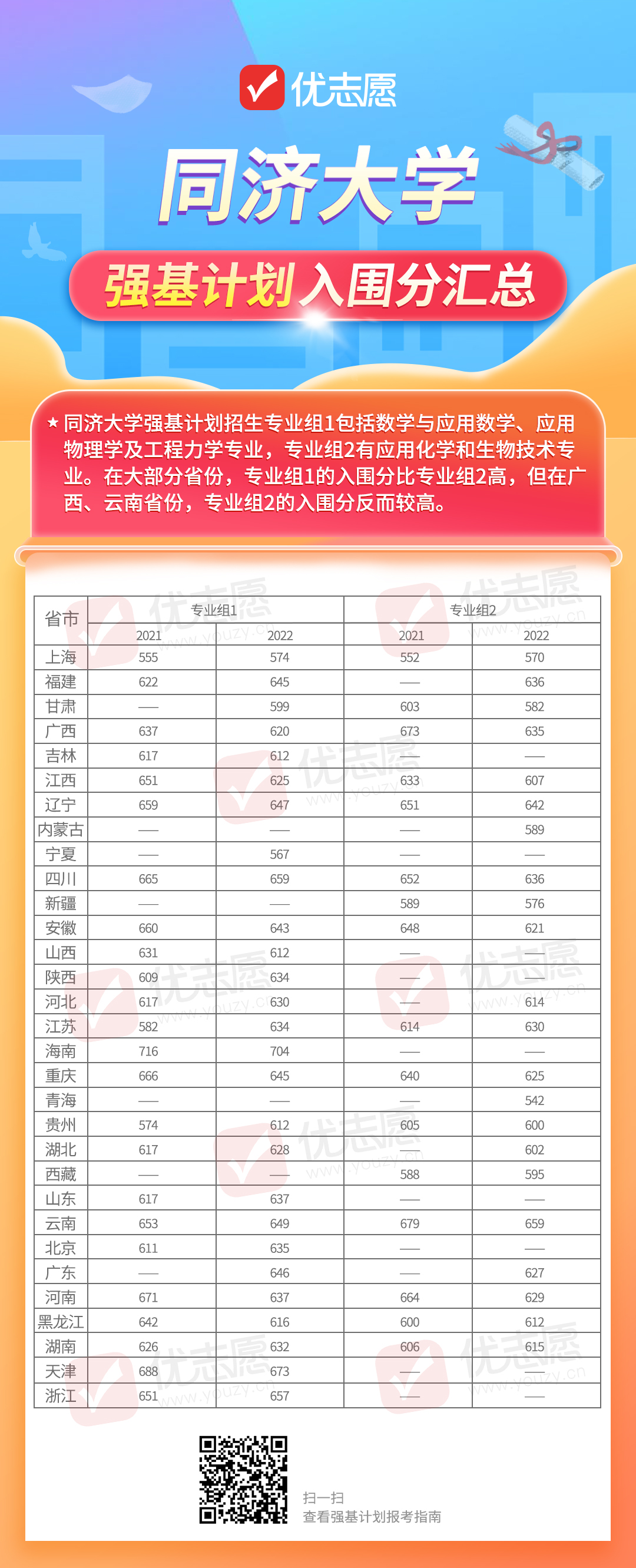 近日各高校强基计划招生简章陆续发布中,为了帮助考生更好地选择院校与专业,小优为大家汇总了同济大学近3年的入围分,大家可以根据历年数据与自身情况进行报考。注:如果高校在该省份当年没有招生或者没有公布入围分数线将用“—”表示。