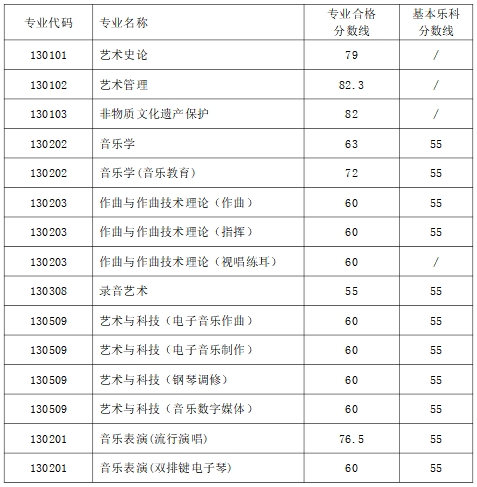 依据教学厅〔2022〕3号《教育部办公厅关于做好2023年普通高等学校部分特殊类型招生工作的通知》及西安音乐学院校党发〔2021〕4号《关于印发<西安音乐学院本科招生工作管理办法(修订)>的通知》相关规定,结合我校2023年本科招生计划及专业设置实际情况,经本科招生工作领导小组2023年4月12日专题会议研究决定,现将西安音乐学院2023年本科招生考试各专业合格分数线及合格考生名单相关信息公布如下: