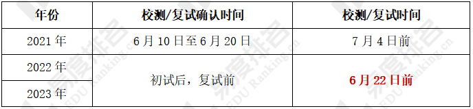 由于增加了初试,校测确认调整为复试确认,复试时间由出分后调整为出分前。