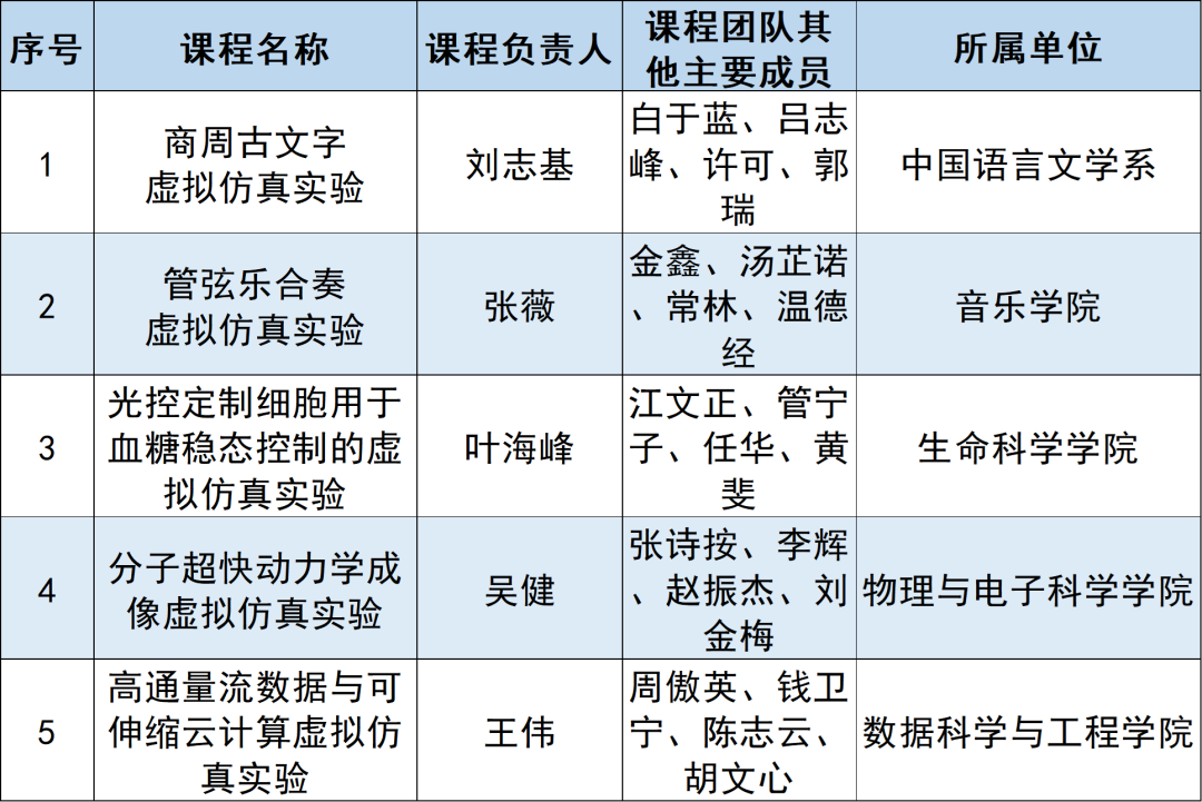 虚拟仿真实验教学一流课程(5门)