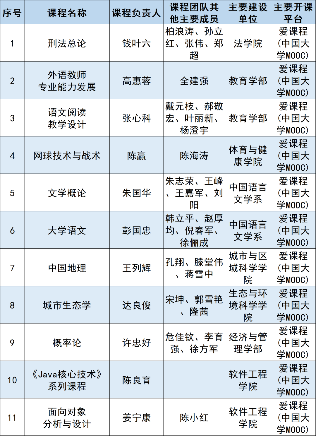 线上一流课程(11门)