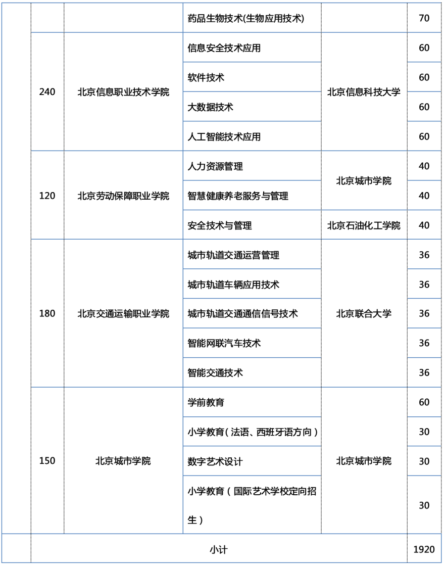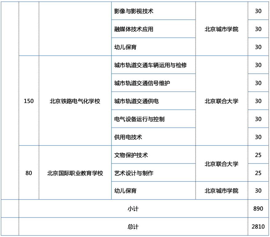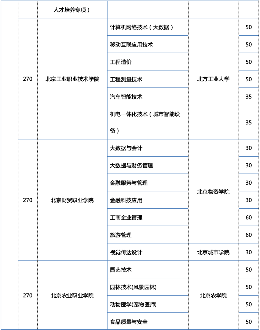 3.招生计划按照首都经济社会发展需要以及职业院校事业发展需求,由市教委统筹安排,具体招生录取办法按照北京教育考试院有关文件执行。招生计划、招生专业、上学地点、收费标准等详细信息参考北京教育考试院当年发布的招生简章。