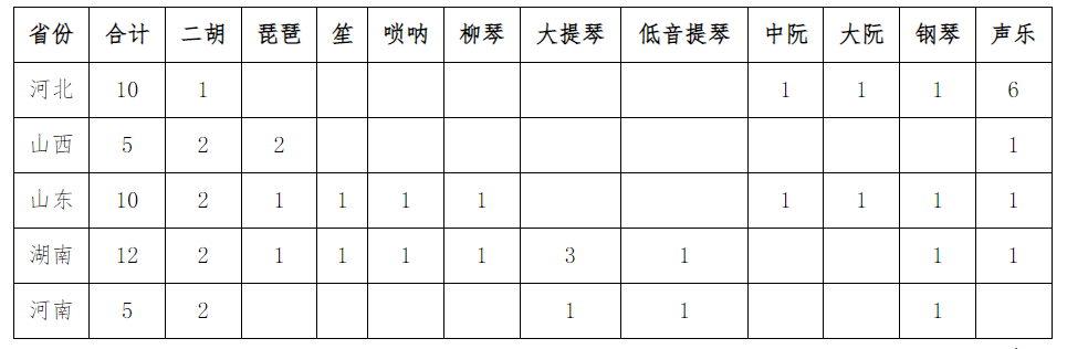 备注:以上招生小项均为乐种主项,招生计划如有调整,以各省级招生考试机构下达的正式文件为准。