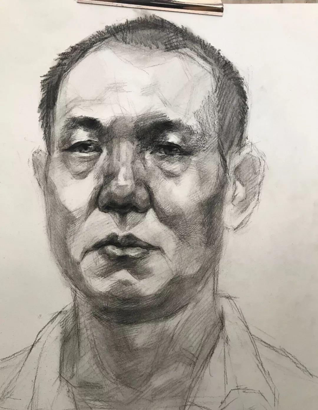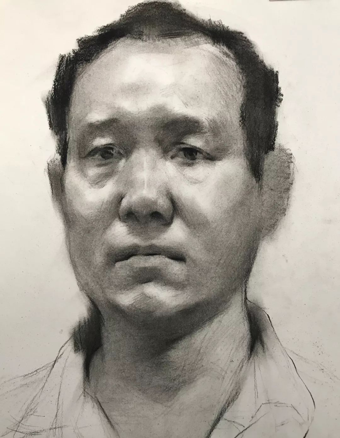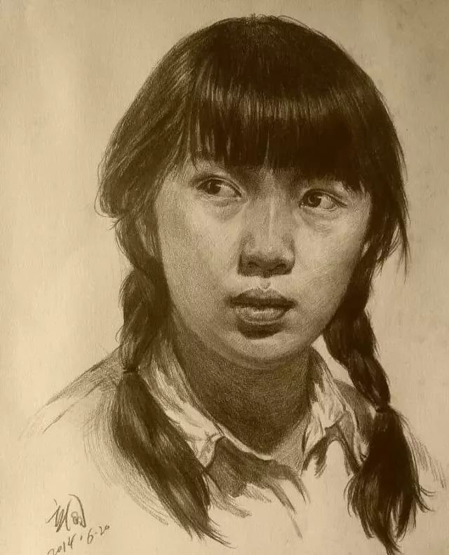 对于初期刚接触头像的学生,照片是个不错的入门课程,因为照片中的形象不乱动,形是固定的,一般照片都是灯光照射效果,光影也比较明显。而且大家统一画同一张照片,问题和优点容易比较。老师也容易讲问题。但是不能画多,毕竟照片是平面的,不方便学生理解和意识到立体空间的存在和重要。