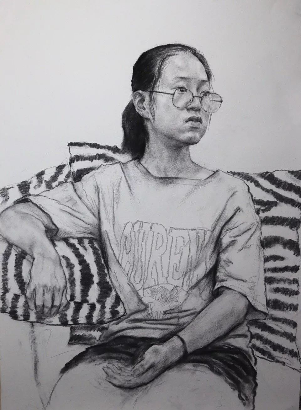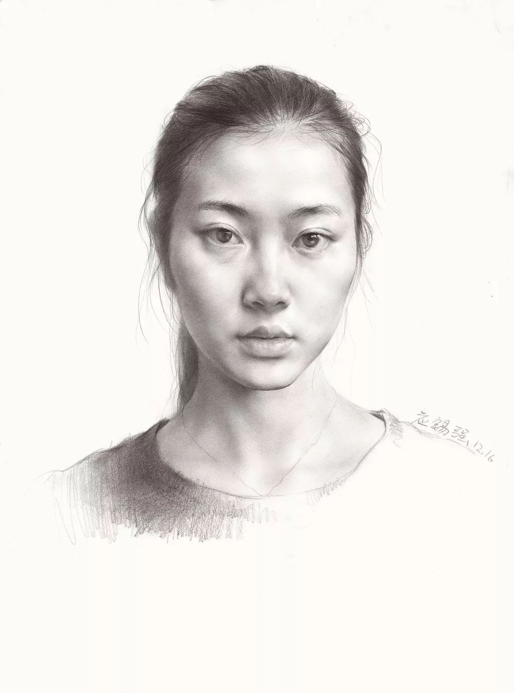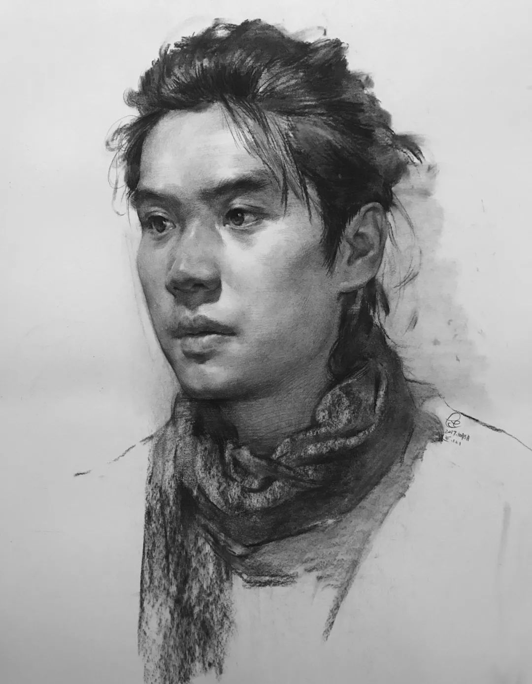 对于初期刚接触头像的学生,照片是个不错的入门课程,因为照片中的形象不乱动,形是固定的,一般照片都是灯光照射效果,光影也比较明显。而且大家统一画同一张照片,问题和优点容易比较。老师也容易讲问题。但是不能画多,毕竟照片是平面的,不方便学生理解和意识到立体空间的存在和重要。