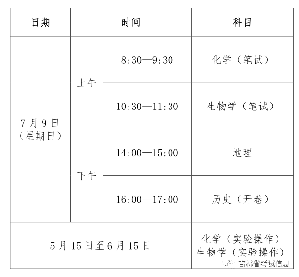 2023年上半年吉林省普通高中学业水平合格性考试日程表
