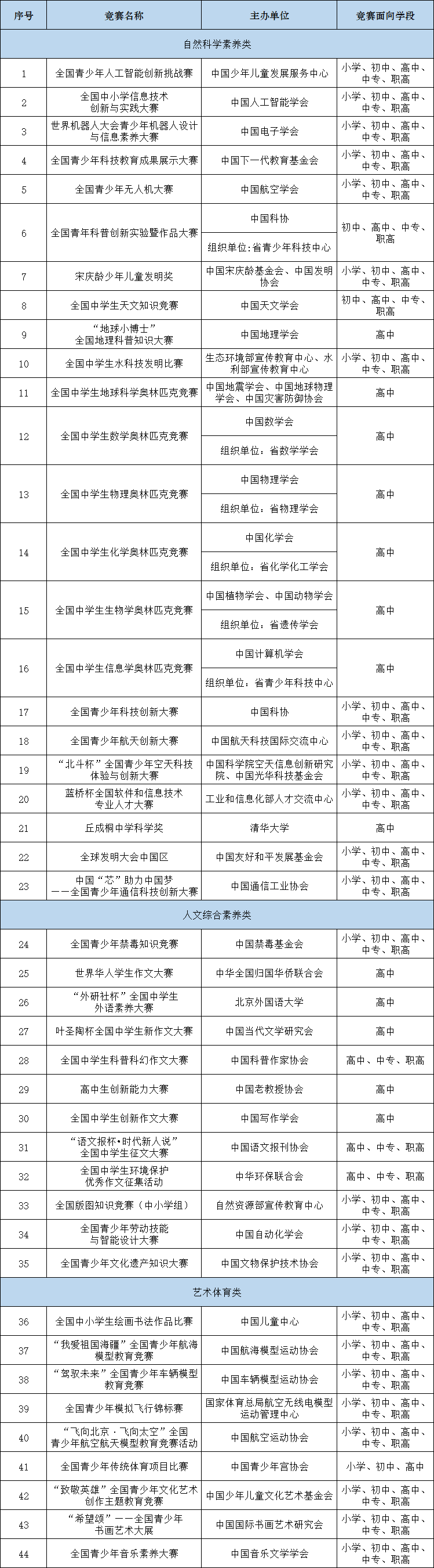 备注:具有以上学科专长类竞赛国家级奖项的考生,须在教育部“阳光高考平台”公示名单中。