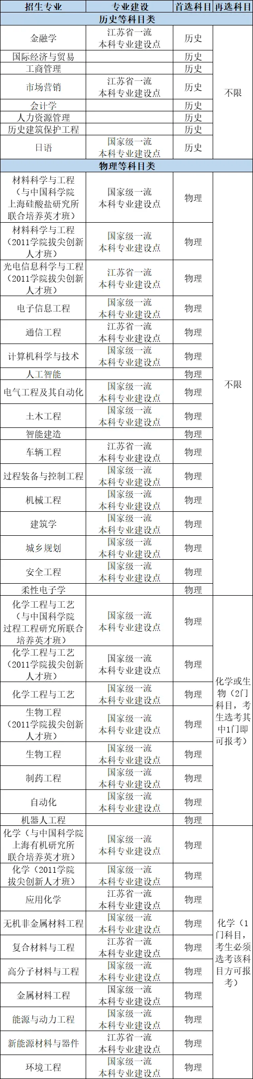 考生根据高考选择性考试科目以及自身学科特长、创新潜质、兴趣爱好等情况综合考虑报考相关专业。学校依据学科优势和特色,代表性学科发展与人才培养要求,向考生开放国家级一流本科建设点等优势专业。学校现有国家级一流本科专业建设点31个、国家级特色专业建设点7个、教育部专业综合改革试点2个、教育部卓越工程师教育培养计划试点专业7个。教育部学位与研究生教育发展中心全国第四轮学科评估中我校