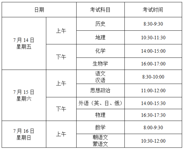 考试时间安排如下: