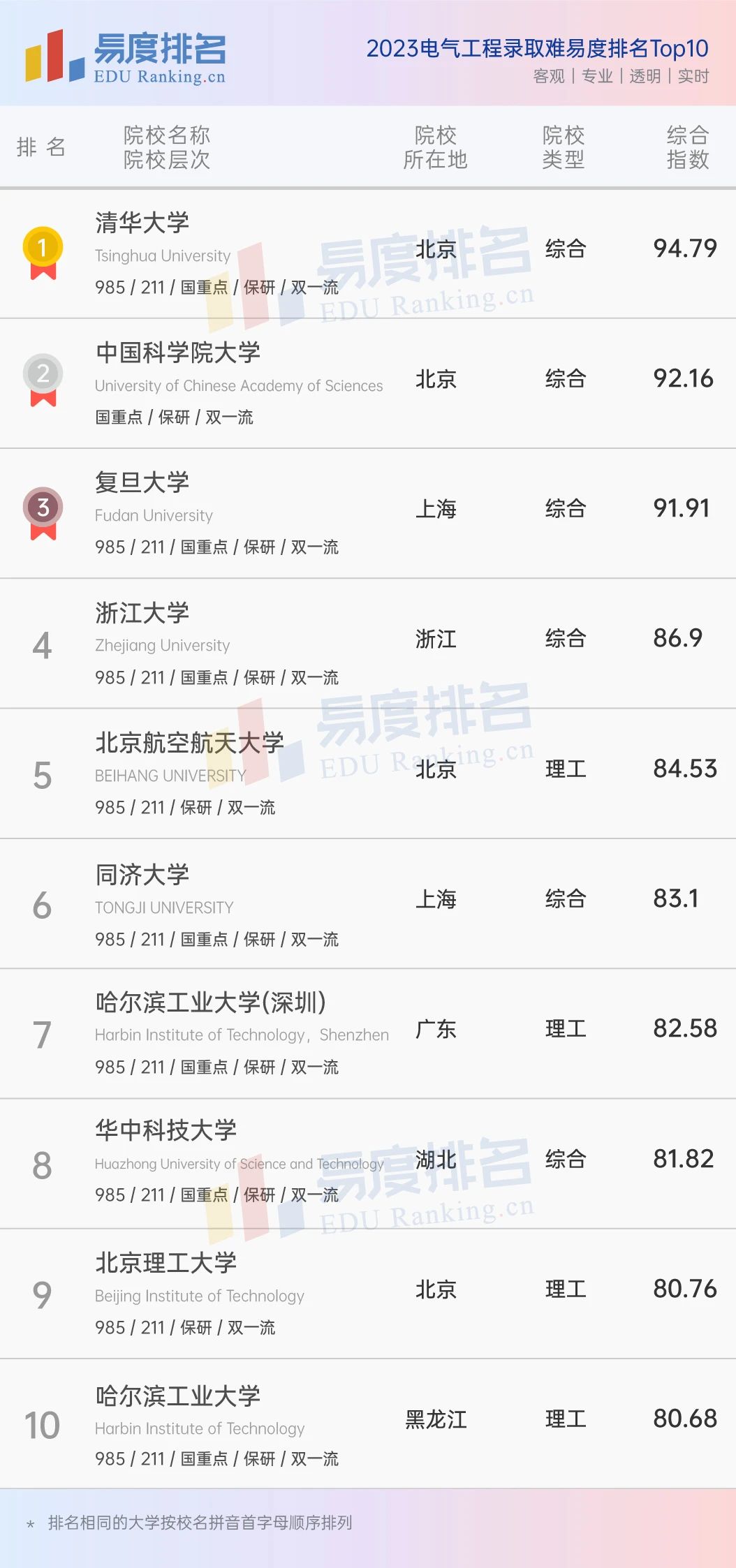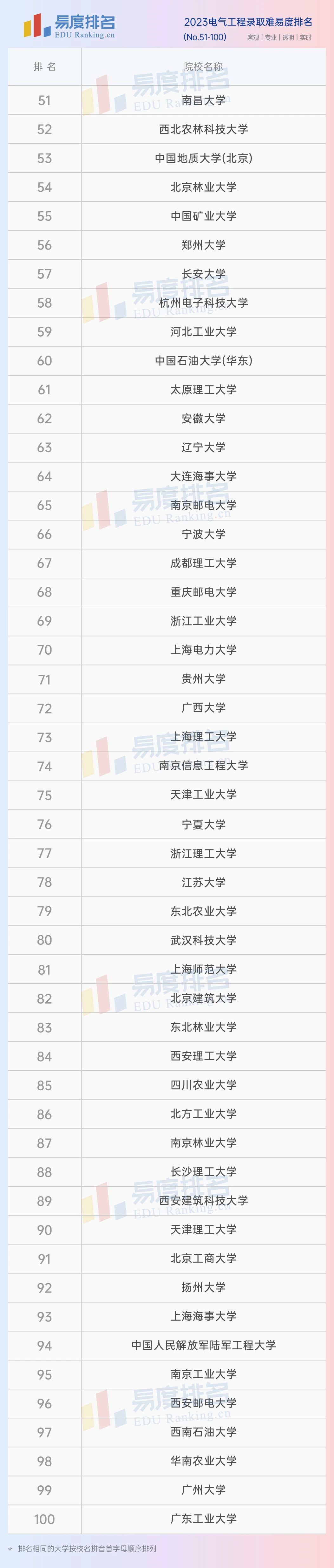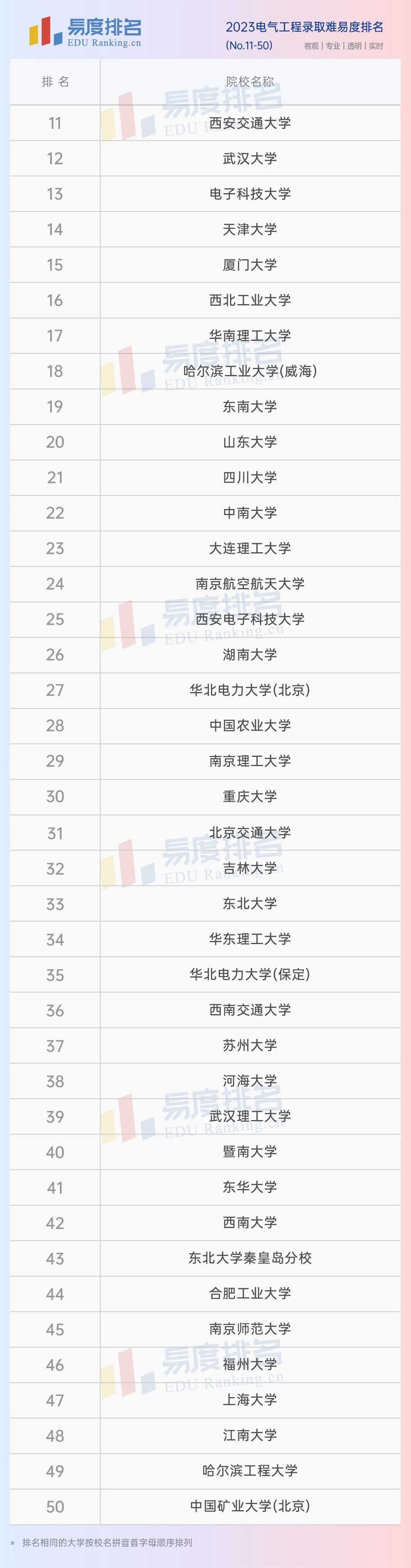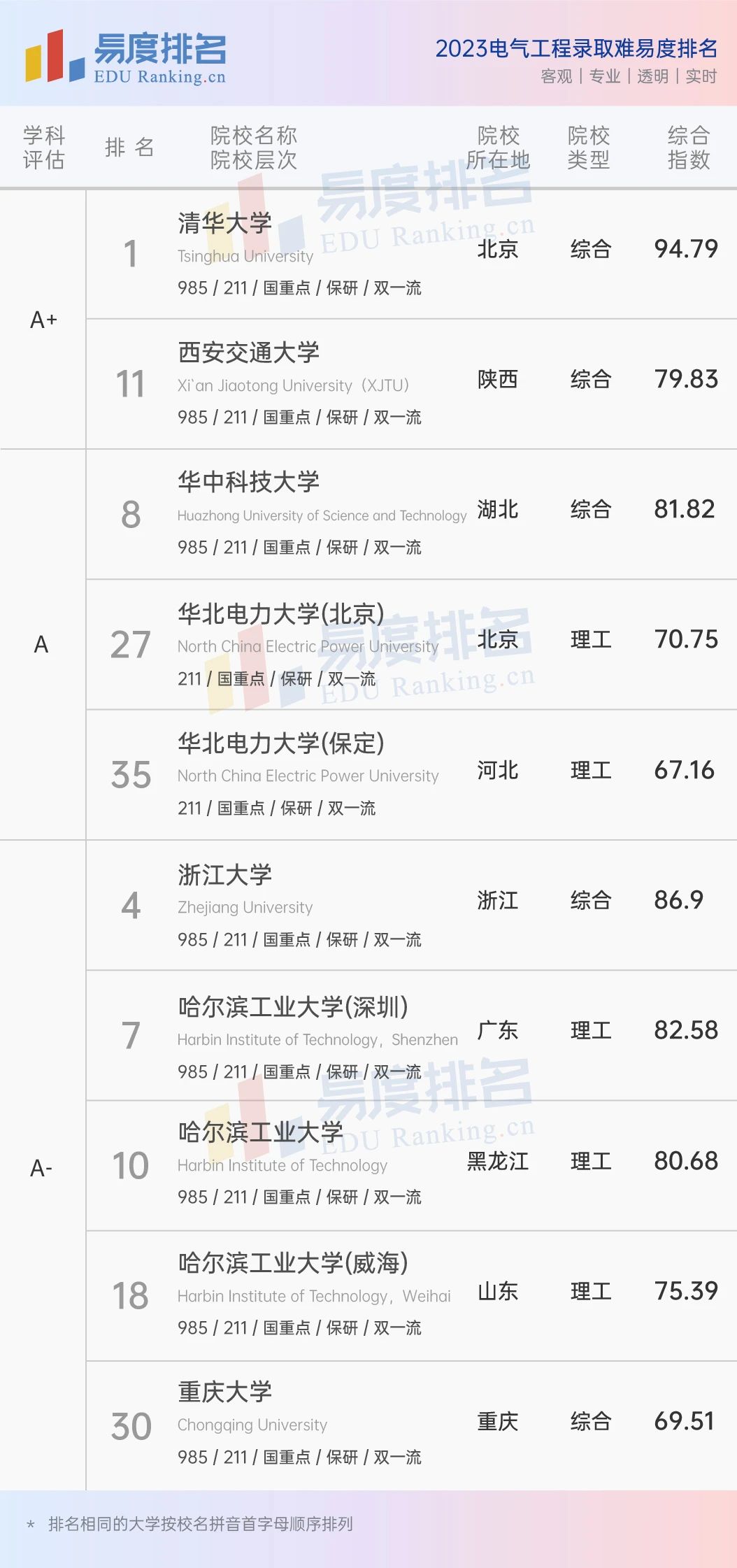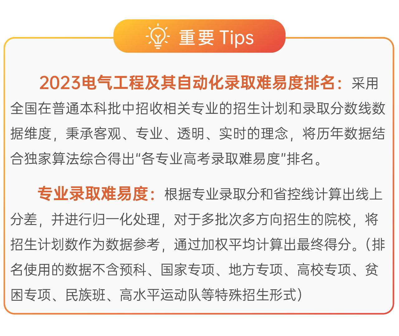 本期易度排名将公布“2023电气工程专业录取难易度排名”全部排名。(具体排名方式见文末)