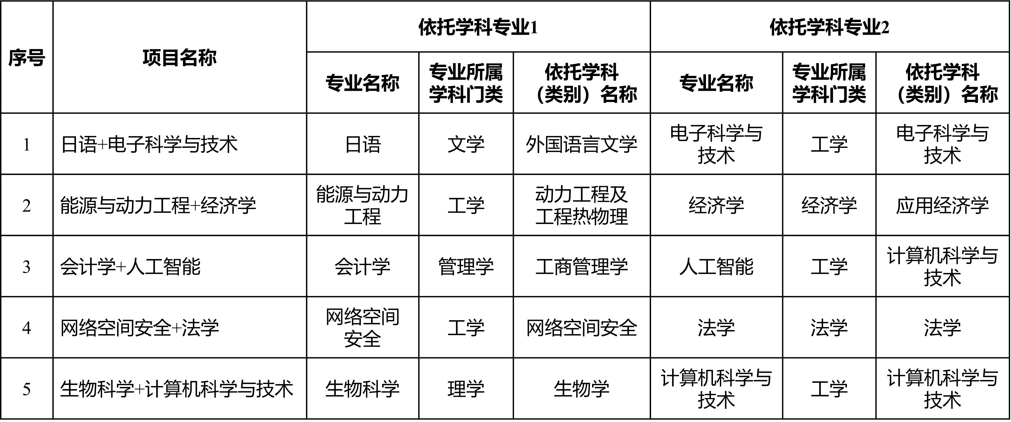 近日,省学位委员会公布了2023年江苏省普通高校双学士学位复合型人才培养项目名单,东南大学申报的“日语+电子科学与技术”“能源与动力工程+经济学”“会计学+人工智能”“网络空间安全+法学”“生物科学+计算机科学与技术”等5个双学士学位复合型人才培养项目获批。这是继去年获批“英语+信息工程”后,东南大学在学科交叉与交叉学科人才培养工作中取得的又一次突破。至此,东南大学双学士学位复合型人才培养项目总数达到6个,位列全省第一。