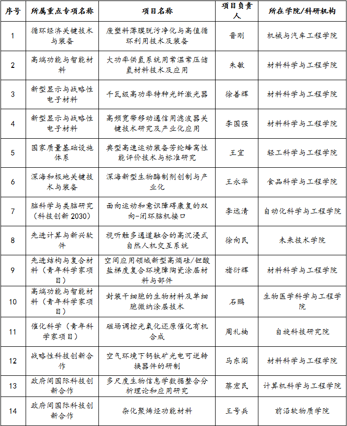 去年,学校科研人员牵头获批2022年度国家重点研发计划项目14项、课题43项,国拨经费近3.8亿元,获批牵头项目/课题的数量和经费均创历史新高。“新型显示与战略性电子材料”和“高端功能与智能材料”项目继续保持该领域领先地位;“面向运动和意识障碍康复的双向-闭环脑机接口”项目获批中央财政专项经费5707万元,创学校单个国家重点研发计划项目国拨经费新高。