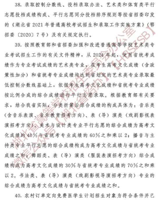 2023年湖北高考艺术类录取规则: