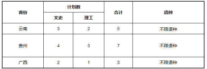 注:四川彝语语种招收一类模式考生,计划单列,不参加此项测试
