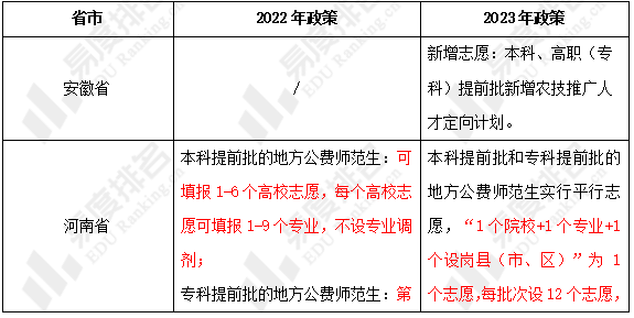 河南省2023年对多个批次上调了可填报志愿上限,国家专项计划本科批、本科一批、地方专项计划本科批、高职高专批可报志愿上限由6个提高为12个。同时增加了