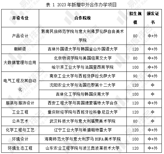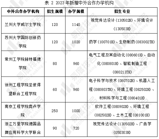 2023年新增中外合作办学机构共计划招生3000人左右,除