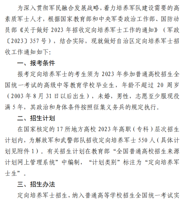 附件1:2023年宁夏回族自治区定向培养军士招生计划.xlsx