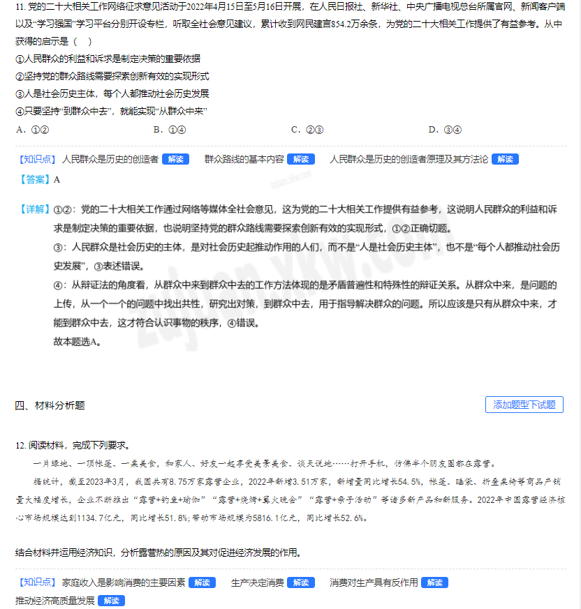 2023年高考全国甲卷政治真题及答案
