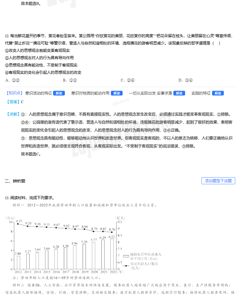 2023年高考全国乙卷政治真题及答案