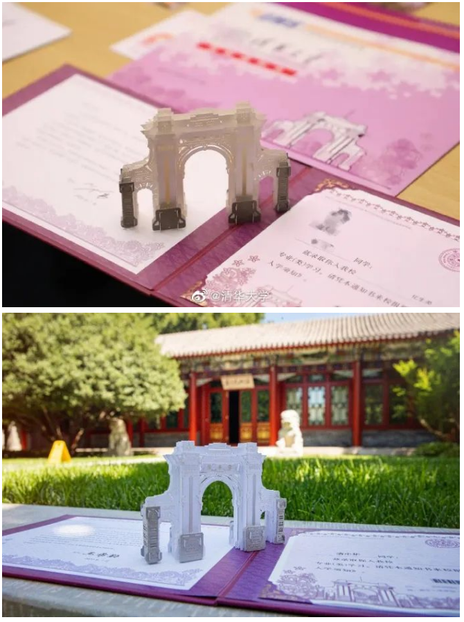 淡紫色的信封将载着立体二校门,融合了校园美景和人文底蕴的横开本录取通知书。