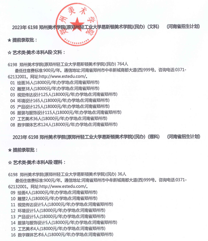 1.郑州美术学院(原郑州轻工业大学易斯顿美术学院)在豫招生计划补充说明