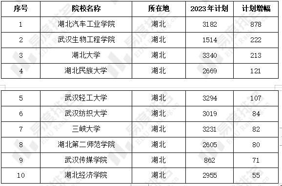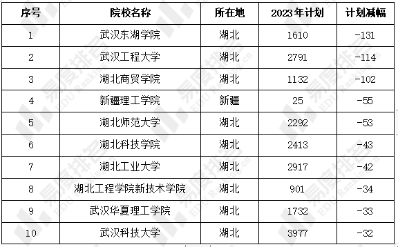 2023年湖北高考扩招和减招TOP10高校