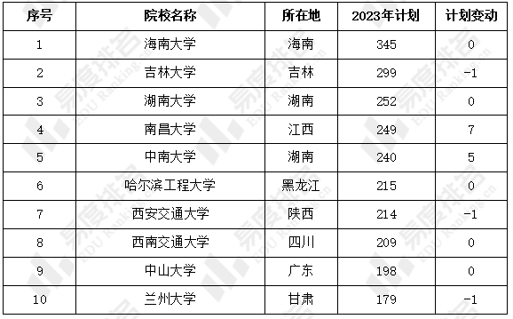 2023年共有121所省外211和985院校(含校区)面向湖北考生招生,招生院校数较上年保持一致。以下展示了2023年招生计划排名前10的省外211和985院校,其中