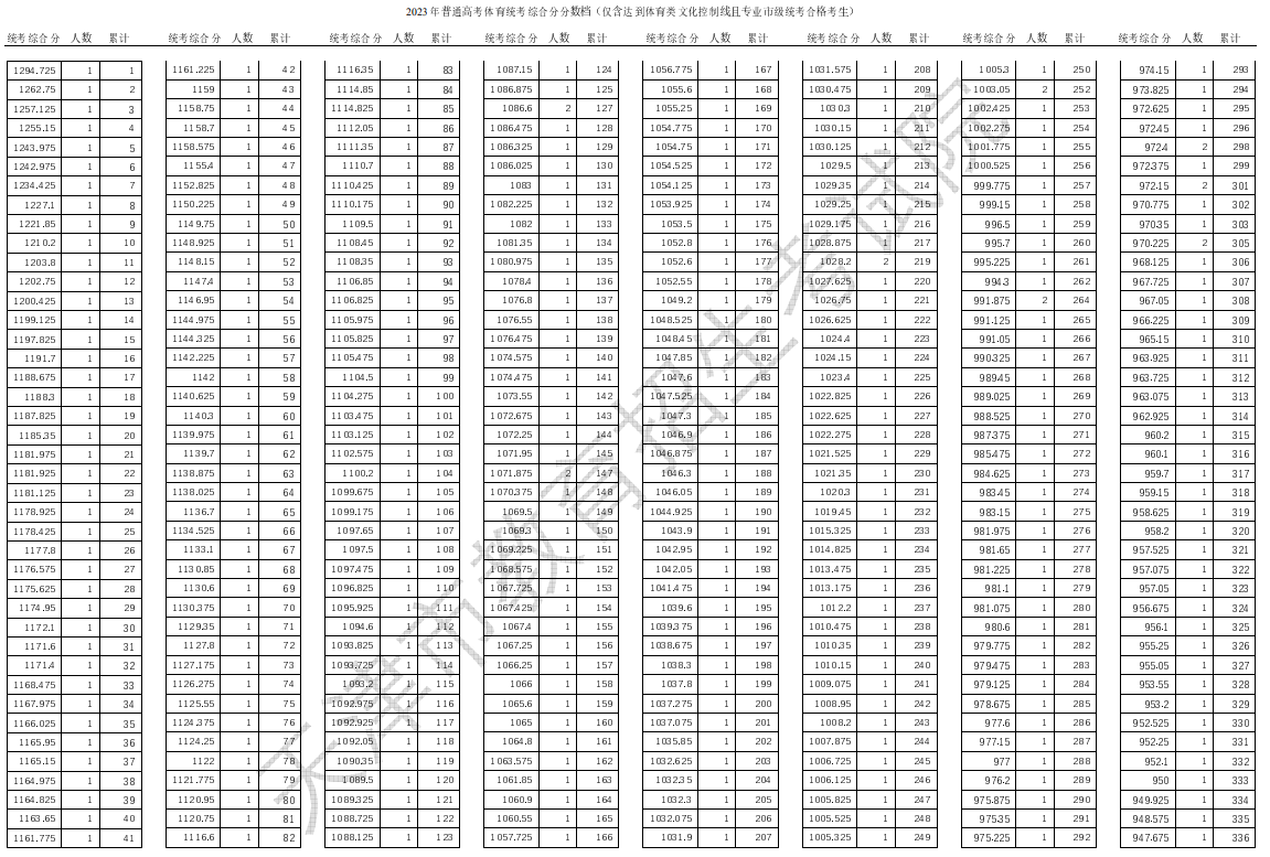 文章来源:天津招考资讯网 2023年普通高考体育统考综合分分数档