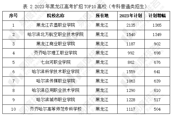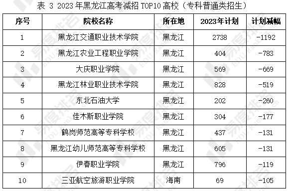 2023年黑龙江高考扩招和减招TOP10高校