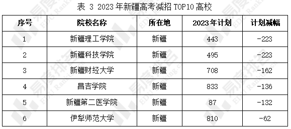 2023年新疆高考扩招和减招TOP10高校