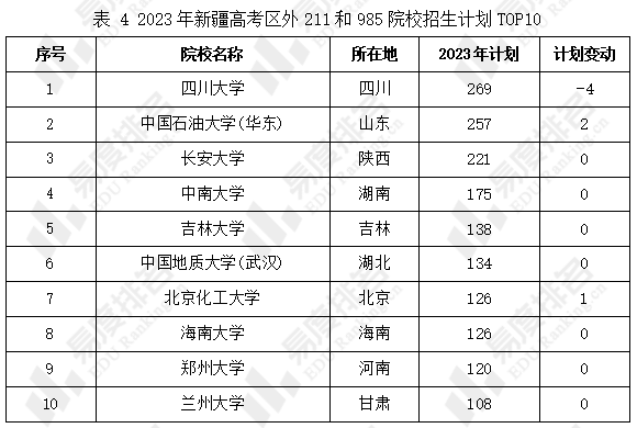 2023年新疆高考招生TOP10的区外211和985