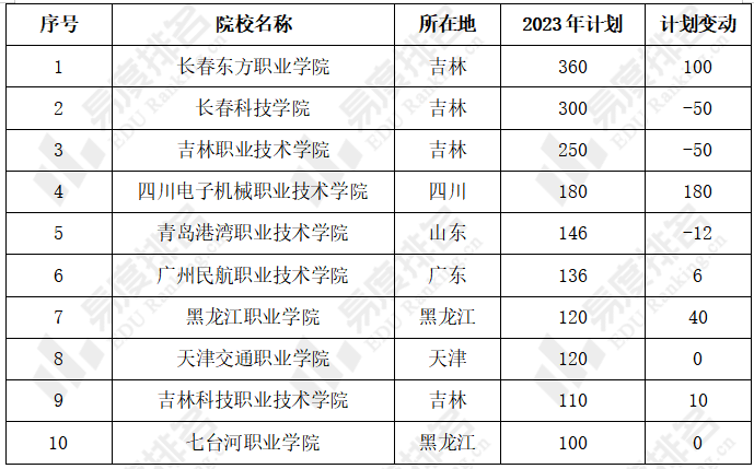 表 2 2023年辽宁高考扩招TOP10高校(专科普通类招生)