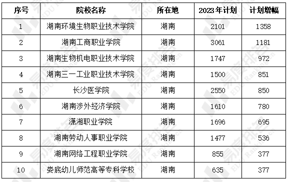 表 2 2023年湖南高考扩招TOP10高校(专科普通类招生)
