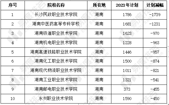 2023年共有687所省外院校面向湖南考生招生,招生院校数较上年减少1所。以下展示了2023年招生计划排名前10的省外院校,其中