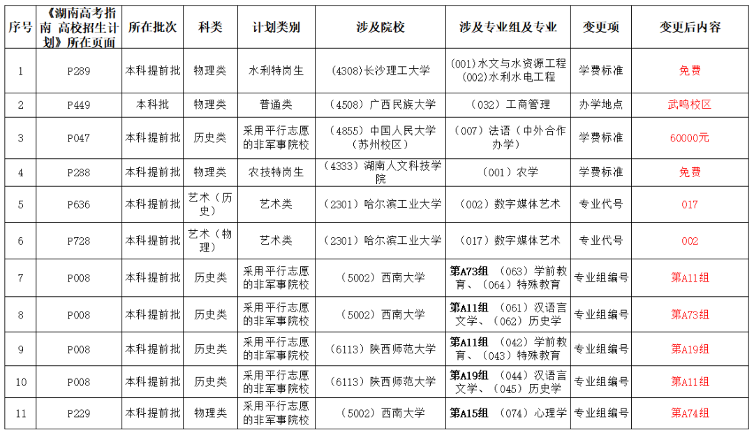 湖南2023年普通高校招生计划信息变更及补充说明(6月27日更新)