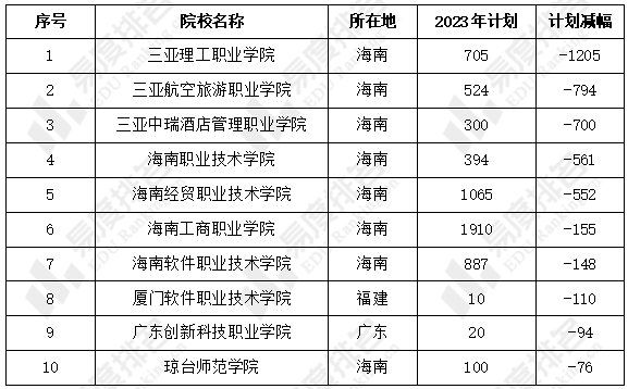 表 4 2023年海南高考省外院校招生计划TOP10(专科普通类招生)
